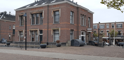 ooit elke wijk van enige omvang had. Aan weerskanten van dit gebouw kun je doorlopen naar de straatweg, het biedt met andere woorden toegang tot het plein vanaf de Straatweg. De ene toegang wordt gemarkeerd door de restanten van een toegangspoort, waarschijnlijk was dit de toegang met hek tot de slachterij. Naast de beide
