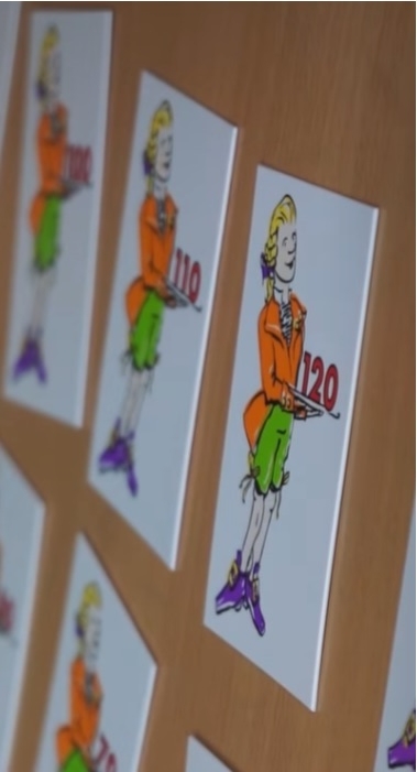 Na de uitleg ga ik elders met vier kinderen een rekenspel doen, Dienaren van de Koning. Er zijn 16 dienaren namelijk van elk tiental tot de 160  (10, 20, 30, enz.). De vier kinderen tellen samen tot 160 waarbij steeds één kind het woord voert bij elk kaartje met een groene stip dat zij van haar stapel (iedereen heeft een stapeltje) omdraait. Bij elk tiental dat genoemd wordt krijgt het kind de betreffende dienaar. Is het kaartje geen groene stip maar een rood kuis, is het volgende kind aan de beurt. Elk kind heeft enkele rode kruizen. Bij de 160 gekomen kunnen de kinderen de dienaren die elk heeft tellen en wie de meeste dienaren heeft is winnaar.