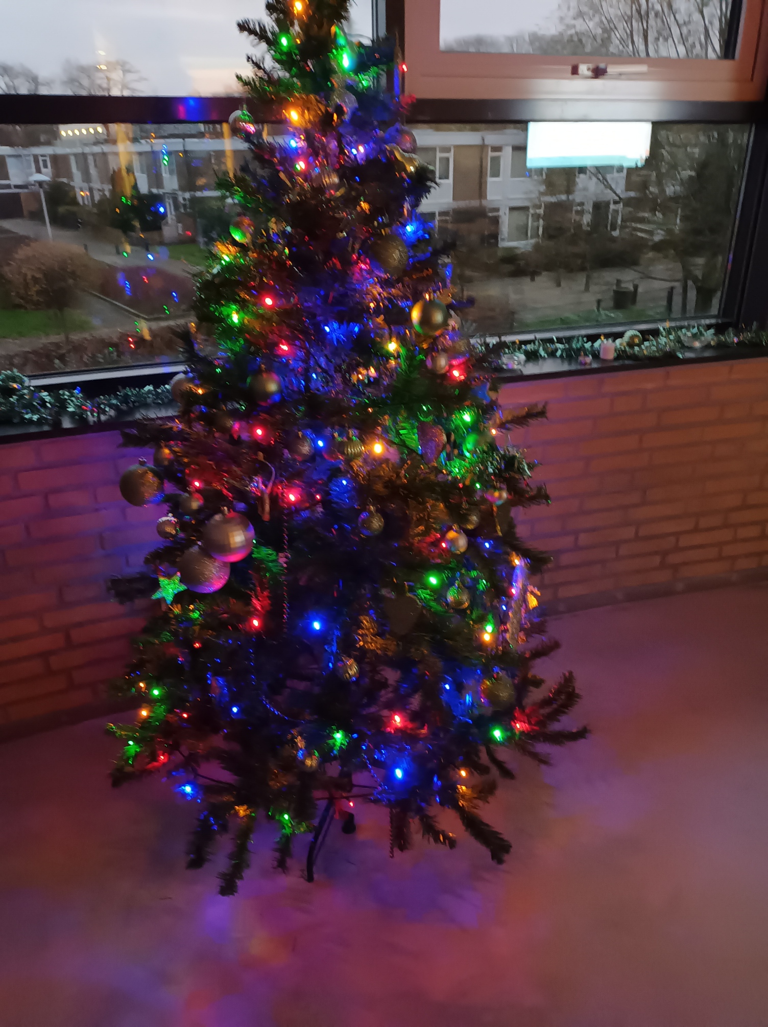 Daarna ga ik twee kinderen helpen de kerstboom uit elkaar te halen, tak voor tak in te vouwen en in een doos op te bergen. Dat is hard werken voor deze twee. Vooral het meisje, groter en steviger dan de jongen, legt er een eer in dit goed te doen en wil op het eind graag de doos zelf de trap af dragen. Ik zeg toch maar dat zij het samen doen, de trap is aan de stijle kant.