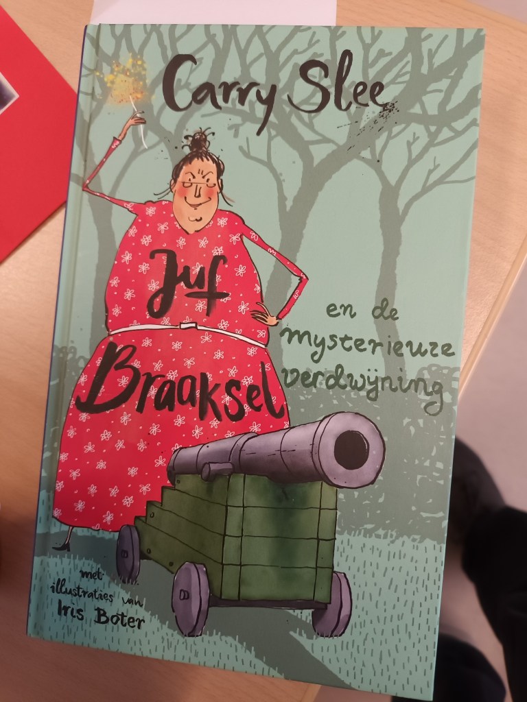 Na de pauze ga ik naar groep 5 alwaar ik een half uur met de klas ga lezen. De hele klas heeft een boek van Carry Slee over schooljuf Braaksel. Ik lees een stukje en geef de beurt aan een kind. Ik lees weer drie regels en daarna neemt een ander kind op mijn aangeven het over. Meester Klaas heeft even de rust om wat nakijkwerk te doen.