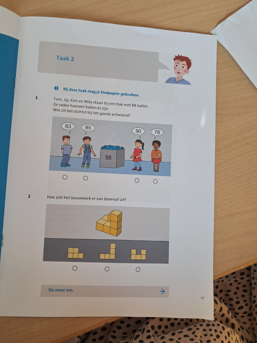 De som op het bord luidt: Je hebt 12 schepjes cacao nodig voor het maken van chocolademelk voor vier kinderen. Hoeveel schepjes heb je nodig voor zes kinderen? Tijdens het maken van de som en het verder individueel werken aan de weektaak wordt het langzaamaan weer rumoerig. Meester Sjoerd legt uit wat er vandaag staat te gebeuren. “Wij beginnen met een rekentoets”, vertelt dat hij later op de morgen weg moet en dat meester Jacques hem komt vervangen. Maar eerst komt de klassikale behandeling van de som die op het bord staat.