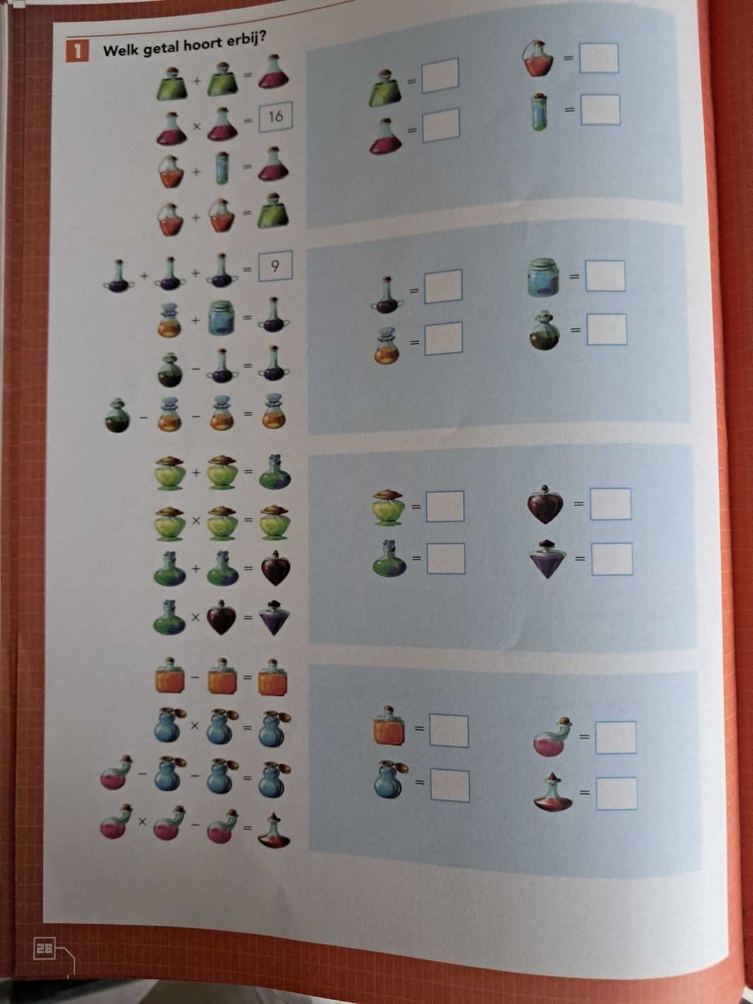 De sommen waar de kinderen aan werken zijn zeer verschillend. Het gaat bijv. om met een beperkt aantal soorten munten (5c, 10c, 20c en 50c) een bedrag te vormen of omgekeerd een bedrag op te delen in een aantal munten. De meer zware hersenbrekers zijn sommen waarbij, vooruitlopend op de algebra van de middelbare school, getallen aan bepaalde symbolen moeten worden gekoppeld.