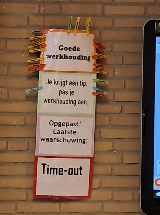 Na afloop kijkt de klas het gezamenlijk na en moeten zij verkeerd geschreven woorden met een blauw potlood opnieuw schrijven. Tijdens deze schooldag krijgen drie kinderen de tip hun werkhouding te verbeteren, en één krijgt een laatste waarschuwing, een paar krijgen opstekers. Hierbij wordt ‘wat ik maar noem de leergedragthermometer gebruikt, waarbij voor elk kind een knijper voorhanden is die aangeeft hoe het kind zich gedraagt.