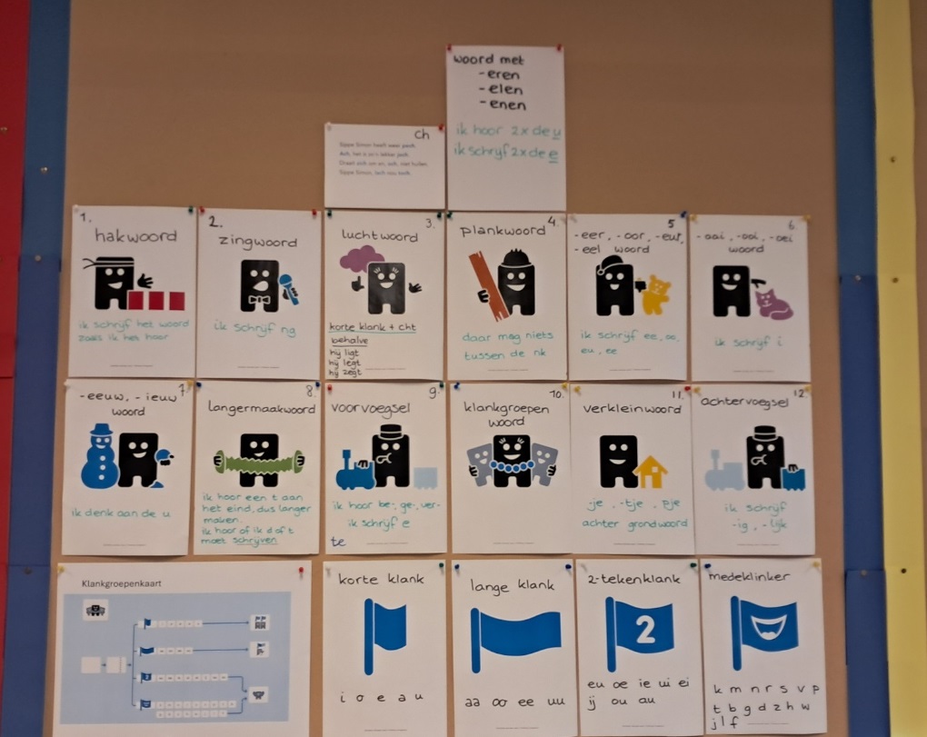 Juf Johanna geeft direct na de pauze met tien minuten vrij tekenen en lezen de klas even de tijd om tot rust te komen. Daarna legt ze een nieuwe spellingscategorie uit, d.w.z. een groep woorden waarbij je steeds de zelfde schrijfwijze moet toepassen. Dit keer zijn het kilowoorden, woorden waarbij je een lange ie hoort maar een korte i schrijft: kilo, bami, finale, enz. een papier met de afbeelding van deze categorie komt achter in de klas op het prikbord te hangen, naast de andere spellingscategorieën.