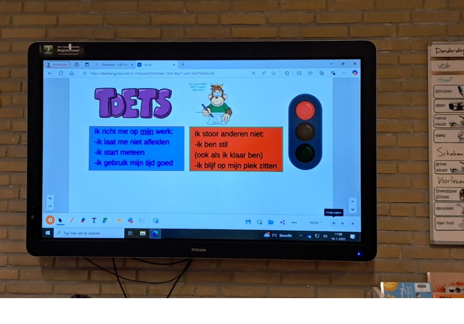 Een jongen is in de kerstvakantie naar een andere school over gestapt. Als de kinderen binnen komen staat hun eerst werkopdracht op het bord: een kleurplaat van 2025 inkleuren (waren zij al eerder aan begonnen) en een tekening invullen met vooruitzichten en goede voornemens voor het nieuwe jaar. Een meisje is daarmee bezig als zij plots mij enthousiast meldt dat zij zaterdag voor het eerst naar de voetbal mocht. Eerst proberen en proeven van de sfeer. Zij vond het erg leuk en vind het ook leuk om met meisjes én jongens te spelen. Een aantal kinderen is er alert op dat het vandaag donderdag is en niet vrijdag. “Hee meester Frank, het is vandaag donderdag!”
